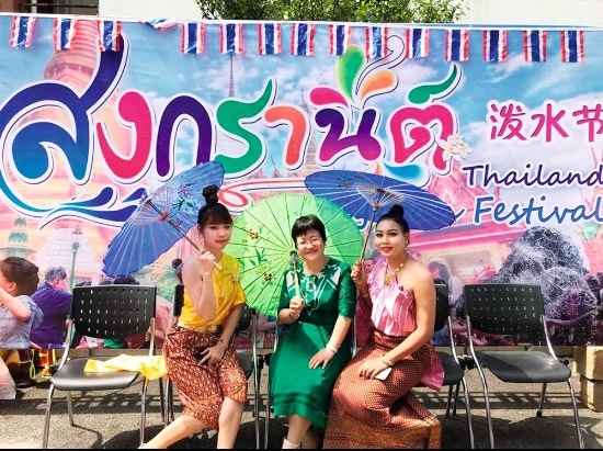 作者(中)參加貴州大學(xué)泰國(guó)學(xué)生組織的“潑水節(jié)”活動(dòng)