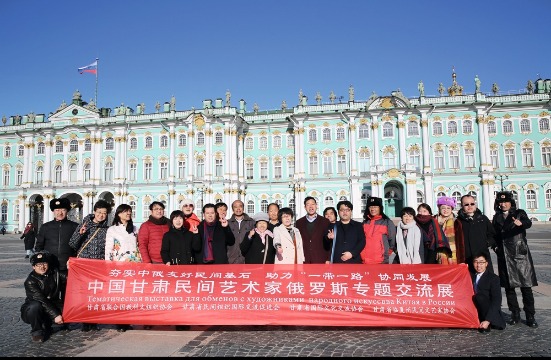 甘肅省民間藝術家在俄羅斯圣彼得堡冬宮廣場合影留念