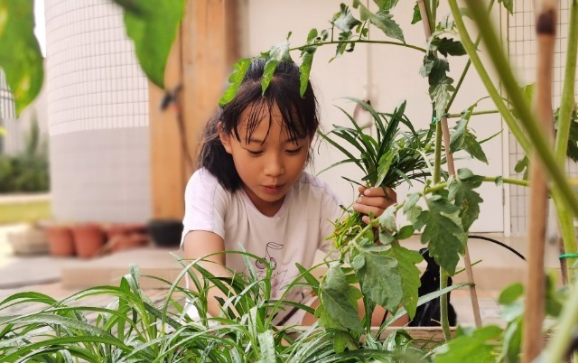 陳意曼:我的童年是在山野間度過的,學(xué)校就在山腳下,孩子們一下課就跑到山上去玩。記得3月的茶花開時,我們會去山上找一種蕨類植物,扯一根在手中,把中間的芯拔掉,就是一根吸管,我們會用它去吸茶花里的花蜜,很甜的。山里有各種各樣的野生植物,我們在山上就可以吃飽肚子。我們還會把口罩拆了做成網(wǎng)兜,用它來抓蚯蚓和青蛙,再去喂雞、養(yǎng)鴨、種菜……現(xiàn)在回想起來,天地和大自然就是我們的學(xué)習(xí)場,我們一直是在玩中學(xué)會解決各種真實問題的。童年的經(jīng)歷讓我相信,生活即教育。所以,文惠小學(xué)的校園即使很小,也會開辟出地方,讓孩子們種植各種植物,體驗二十四節(jié)氣的變化。