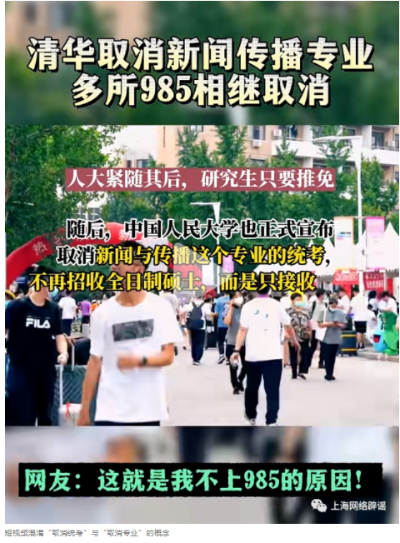 所以,該視頻所稱的“多所985取消(新聞傳播學專業(yè))”都是錯誤的。