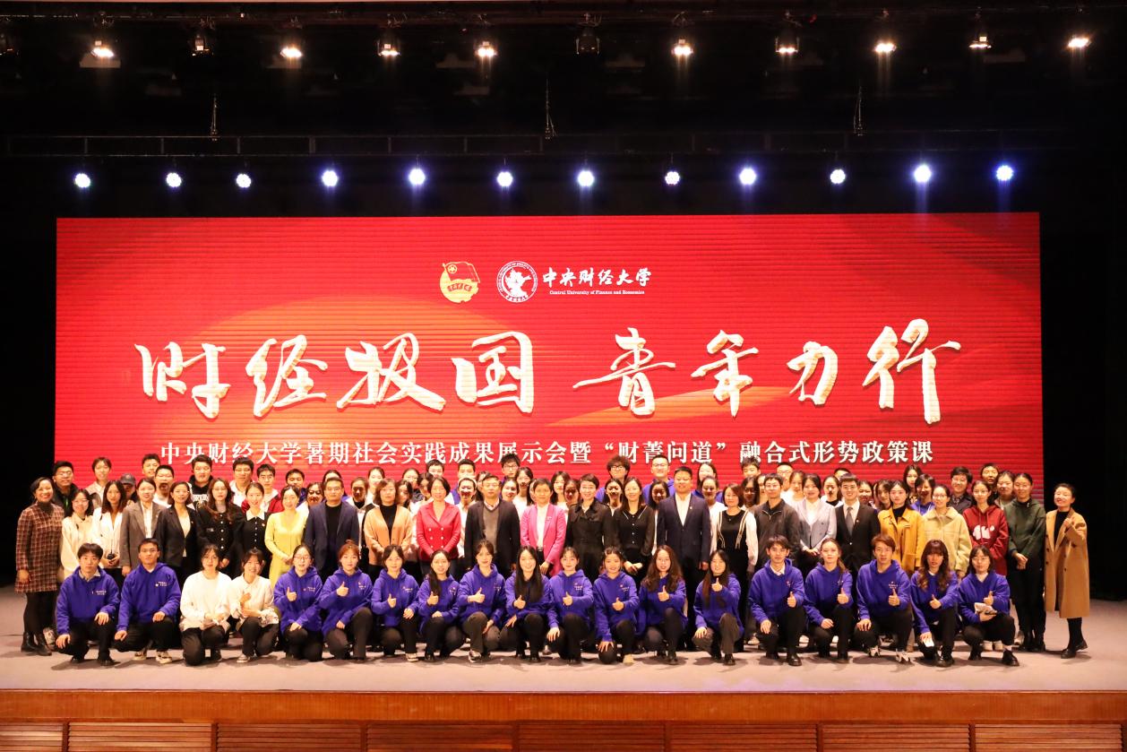 中國教育報-中國教育新聞網訊(通訊員 高楊)11月8日下午,中央財經大學團委、馬克思主義學院聯合主辦“財經報國青年力行”暑期社會實踐成果展示會暨“財菁問道”融合式形勢與政策課。此堂形勢與政策課立足“社會大課堂”,以沉浸融合式、青年主體式的“大思政課”新模式,共同感悟中財大人躬身社會實踐、感應時代脈搏的青年力量,引發師生共鳴。