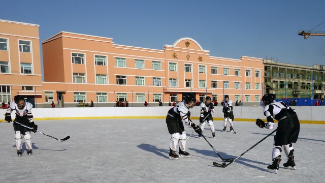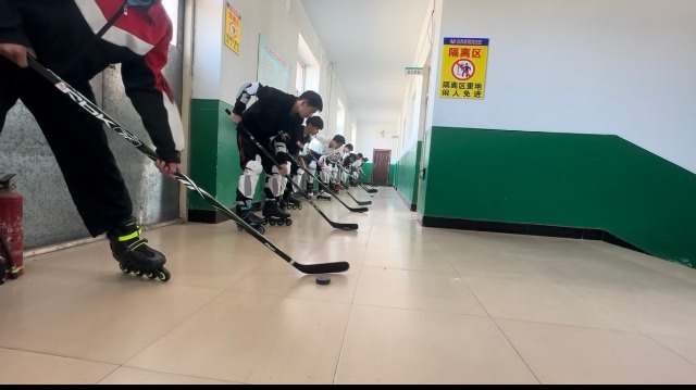中國教育報-中國教育新聞網訊(通訊員 楊長江)冰城冬日,寒風凜冽。在黑龍江省哈爾濱市木蘭縣初級中學校的操場上,十幾名少年在冰場上飛馳,冰球在他們的球桿下婉若游龍。這是該校在上體育課,另一組準備上課的孩子已經有組織地在教學樓的走廊里練起了基本動作。