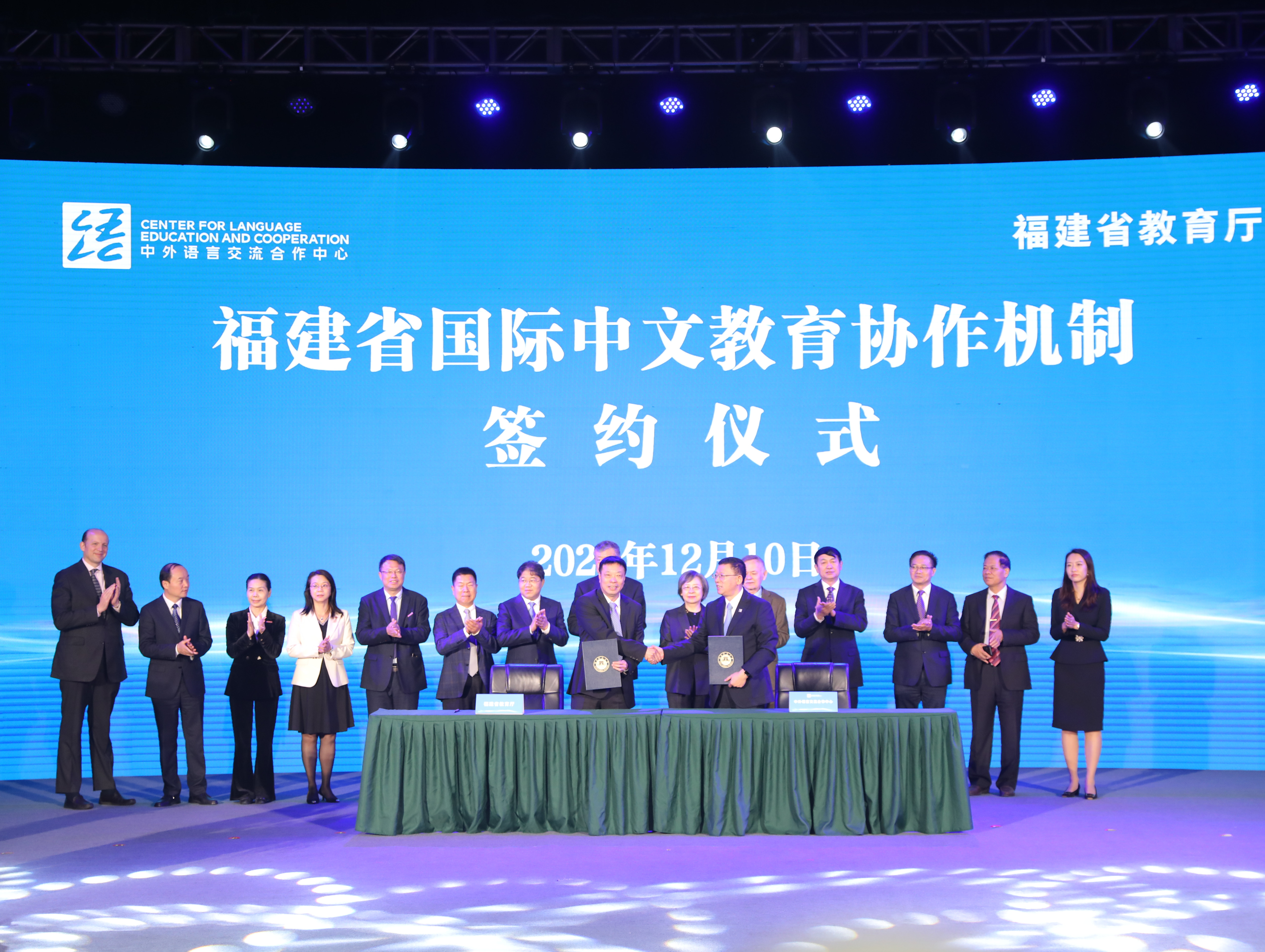 活動(dòng)啟動(dòng)儀式上,教育部中外語(yǔ)言交流合作中心與福建省教育廳簽署了福建省國(guó)際中文教育協(xié)作機(jī)制備忘錄,推進(jìn)國(guó)際中文教育高質(zhì)量發(fā)展和服務(wù)福建省教育對(duì)外開(kāi)放、地方經(jīng)濟(jì)社會(huì)發(fā)展。教育部中外語(yǔ)言交流合作中心主任馬箭飛、福建省委教育工委委員,省教育廳黨組成員、副廳長(zhǎng)李絢簽代表雙方簽署備忘錄。