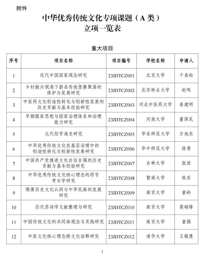 日前,教育部公布中華優秀傳統文化專項課題(A類)立項結果,共計立項122項,其中重大項目24項;重點項目98項。和教育小微一起來看名單——