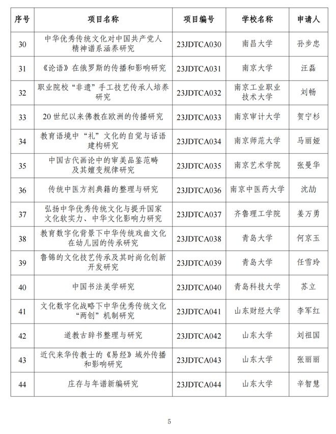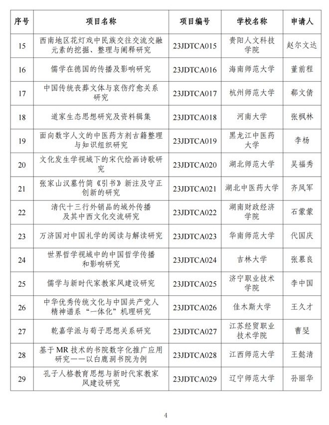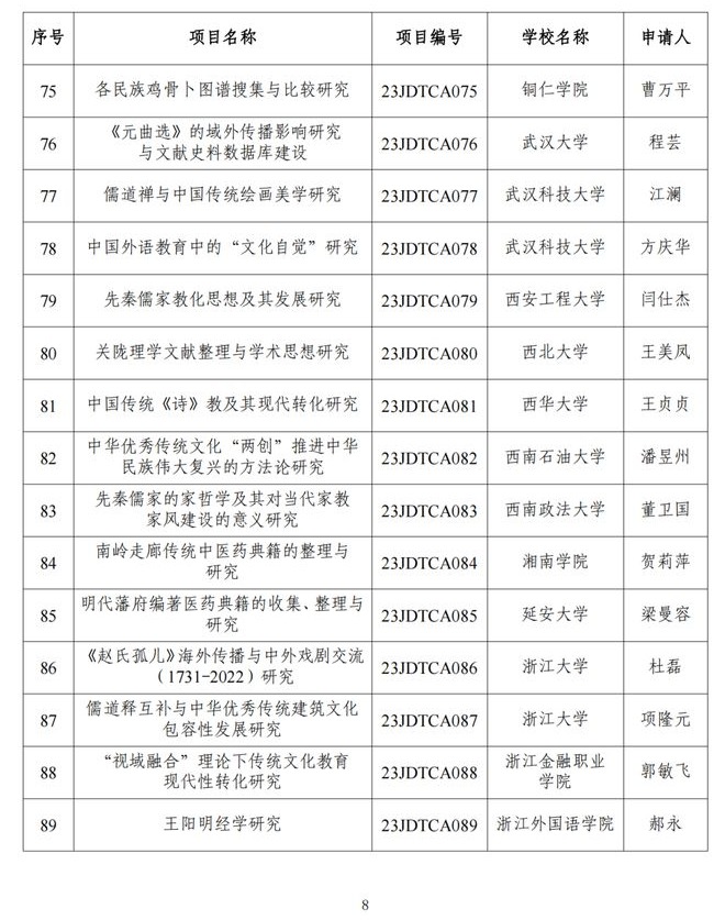 中華優秀傳統文化專項課題(A類)立項一覽表