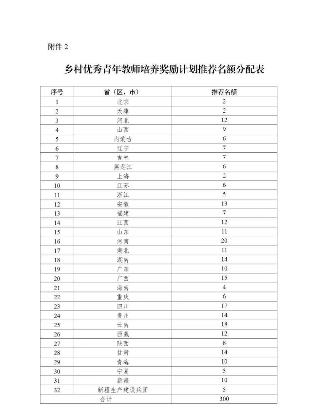 2023年度共培養獎勵300人。各省、自治區、直轄市及新疆生產建設兵團名額分配如下↓↓↓