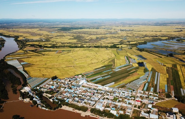 這是2023年9月13日拍攝的黑龍江省寧安市渤海鎮小朱家村附近的稻田(無人機照片)。新華社記者 王建威 攝