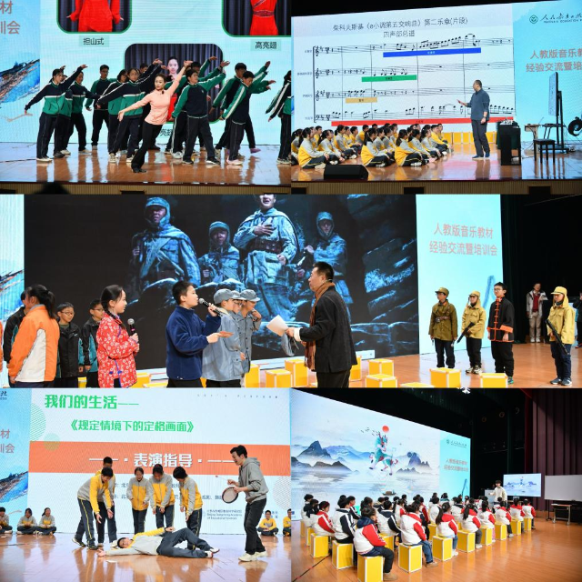 此次培訓(xùn)會(huì)精彩紛呈,既有課程展示、教師培訓(xùn)、校際交流,又有藝術(shù)普及、學(xué)術(shù)研討和音樂演出。12月18日至19日,培訓(xùn)會(huì)向全國教研員與一線教師展示了人民教育出版社第十二套義務(wù)教育教材的課程,涵蓋小學(xué)、初中、高中3個(gè)學(xué)段,音樂、戲劇、舞蹈3個(gè)學(xué)科。來自北京、天津、河北、河南、安徽、江西、黑龍江、貴州、寧夏等地的教研團(tuán)隊(duì)攜手人民教育出版社音樂編輯室,共同呈現(xiàn)了22節(jié)公開課與說課展示,以更直觀的方式讓大家了解新教材課程的創(chuàng)新性與多樣性。此外,人民教育出版社音樂編輯室策劃了人教版音樂教材童聲合唱音樂會(huì)。在揚(yáng)州市人民政府和教育局的大力支持下,揚(yáng)州市中小學(xué)合唱團(tuán)的600余位學(xué)生于18日晚在揚(yáng)州運(yùn)城大劇院進(jìn)行了精彩演出。