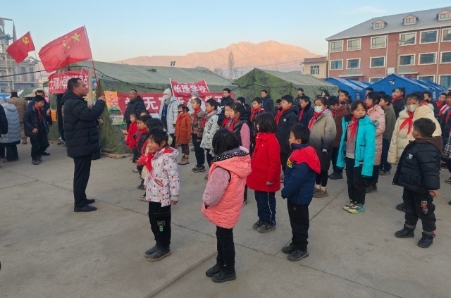 25日早上同一時間,積石山縣152所帳篷學(xué)校都因地制宜舉行升旗儀式,另有9所小學(xué),經(jīng)過鑒定于25日上午全面復(fù)學(xué)。