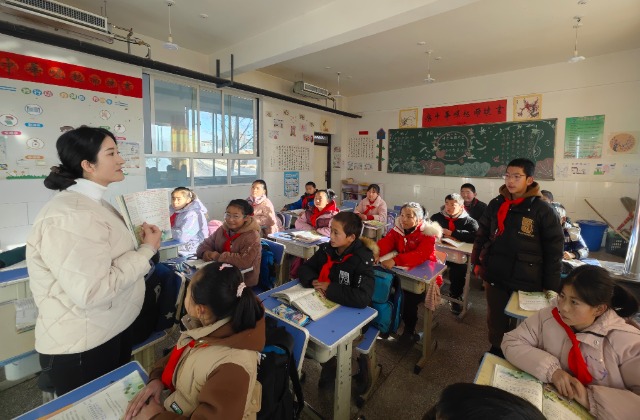 12月25日,陽山希望小學(xué)的課間時分,五年級學(xué)生趙永蘭和小伙伴開心地在操場上比賽跳繩。