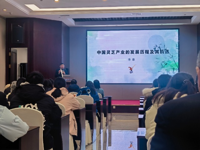 12月23日,江蘇農(nóng)林職院學(xué)生聆聽(tīng)江蘇安惠生物科技有限公司董事長(zhǎng)陳惠關(guān)于“中國(guó)靈芝產(chǎn)業(yè)的發(fā)展歷程及其機(jī)遇”講座。