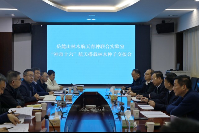 岳麓山林木航天育種聯合實驗室“神舟十六”航天搭載林木種子交接會現場。湖南環境生物職業技術學院供圖