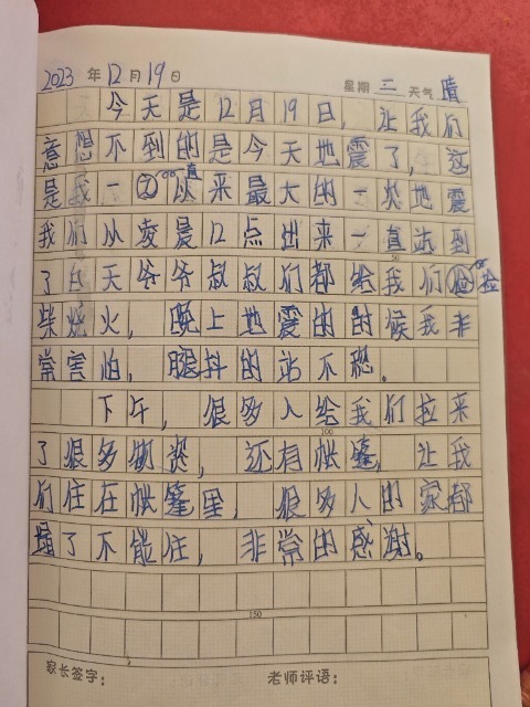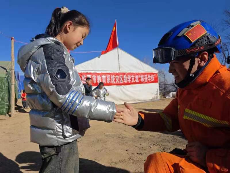 12月27日,距離積石山縣6.2級地震發(fā)生已過去9天,很多像小雅麗一樣的學(xué)生,已經(jīng)在教師的引導(dǎo)陪伴下,走出陰霾,恢復(fù)了往日朝氣。