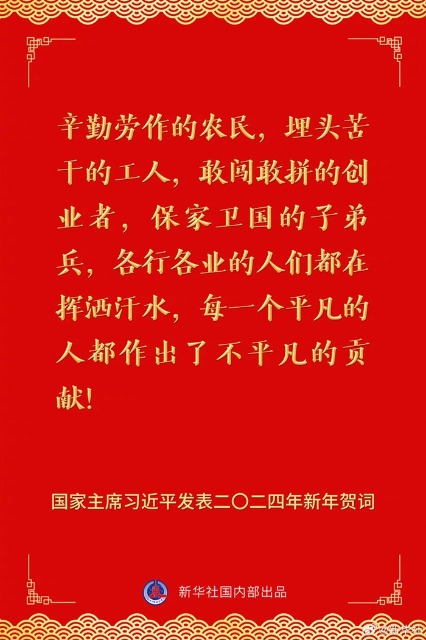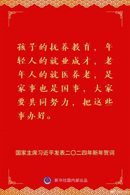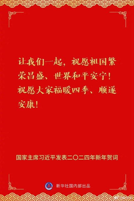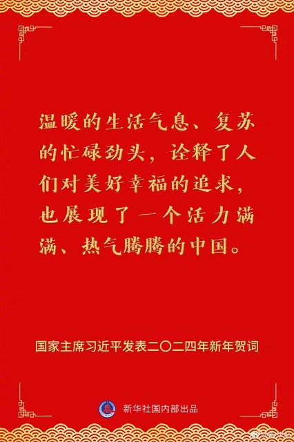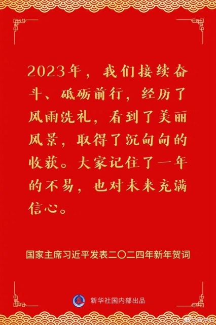 國家主席習近平發表二〇二四年新年賀詞,一起來看金句。