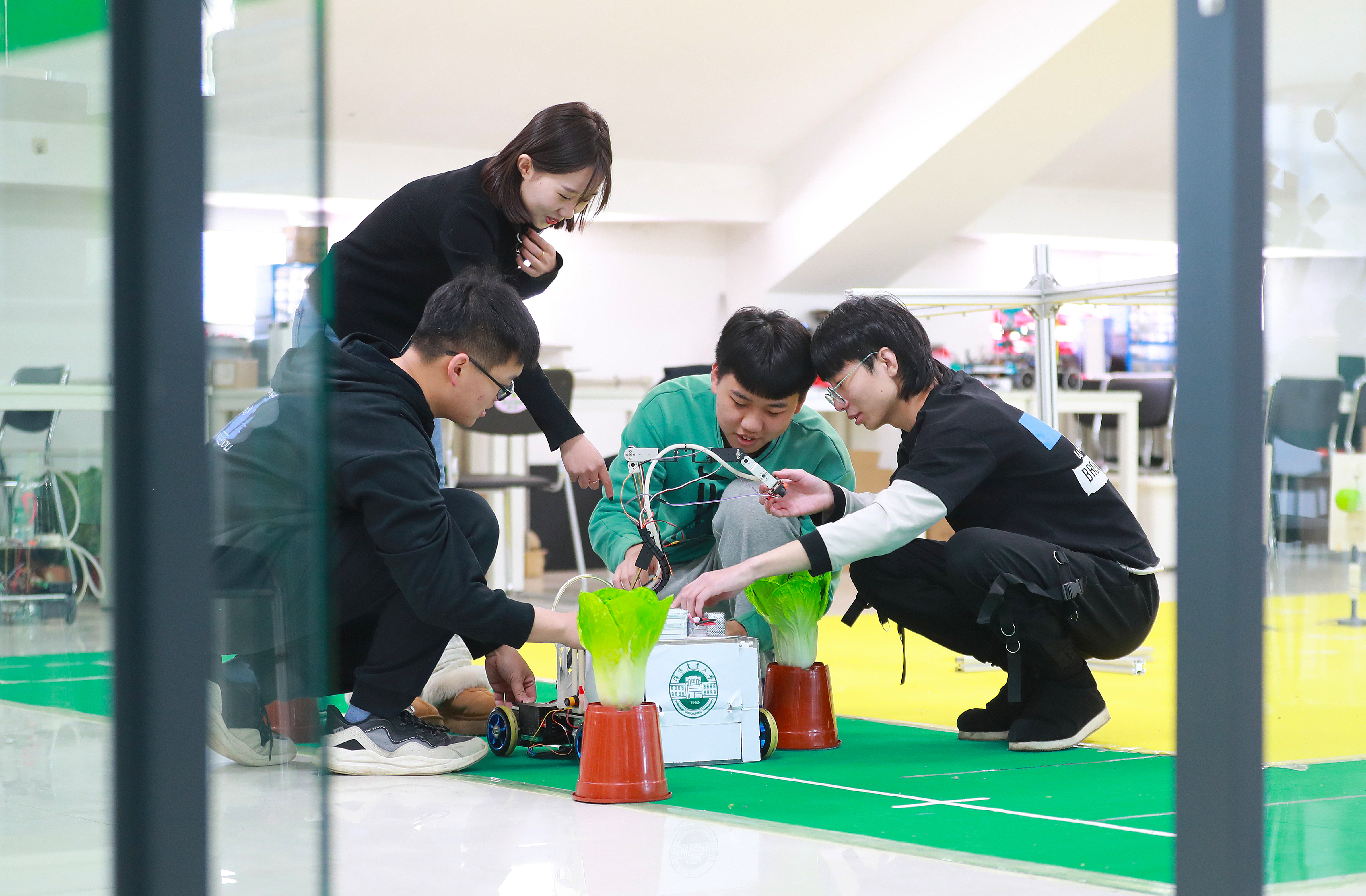 1月5日,沈陽農(nóng)大學(xué)生創(chuàng)新創(chuàng)業(yè)教育基地,“農(nóng)業(yè)機器人”項目團隊開展農(nóng)業(yè)機器人研究。