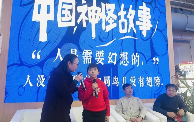 中國教育報-中國教育新聞網(wǎng)訊(記者 郜云雁)“南海的天帝叫儵(同倏),北海的天帝叫忽……中央的天帝叫混沌,天生是個好脾氣,任他們在他跟前來來往往,從不干涉,有時還順便熱情款待他們,招待得非常周到……一天,儵和忽又碰在一起,談起混沌,打心眼里感激,商量著該怎樣報答混沌的一番恩德……”1月12日下午,在2024年北京圖書訂貨會上海世紀(jì)出版集團(tuán)活動展臺,來自北京朝陽區(qū)白家莊小學(xué)三年級的堂堂,正在繪聲繪色地為現(xiàn)場觀眾講“混沌開竅”的故事。