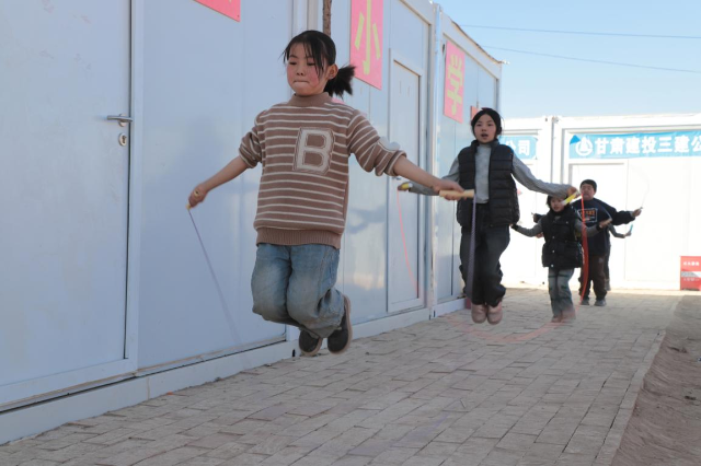 2023年12月25日,還是帳篷學校的大河家臨時教學點舉行了莊嚴的升國旗儀式,標志著大河家小學臨時教學點復課,如今師生在更暖和的板房教室共度寒假。因為彼此都是鄰居,有時教師會做飯和學生一起吃,整個安置點就是個大家庭。“學校和家在一起,我每天都能和同學們一起玩,特別開心。”馬麗娜說。