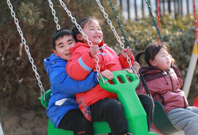 新的三輪車、攀爬架、蹦蹦床、大滑梯……操場上,淶水縣三坡學區都衙小學(校中園)幼兒園大班的孩子們開心地玩耍著。雖然興奮,但他們十分愛惜這些新玩具,從不做任何破壞。他們說,這是他們的新伙伴,他們會好好保護它們。