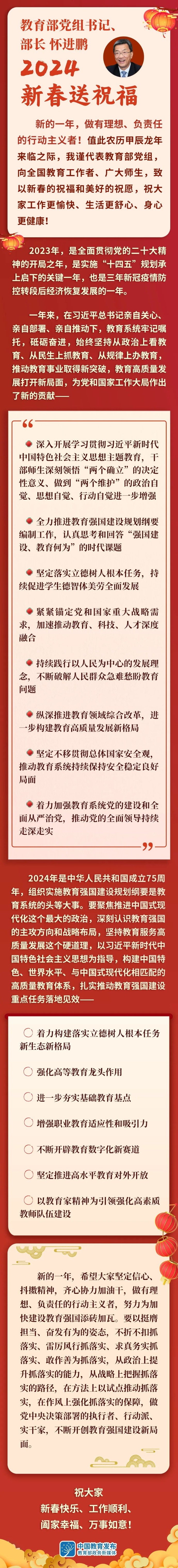 教育部部長懷進鵬送來新春祝福
