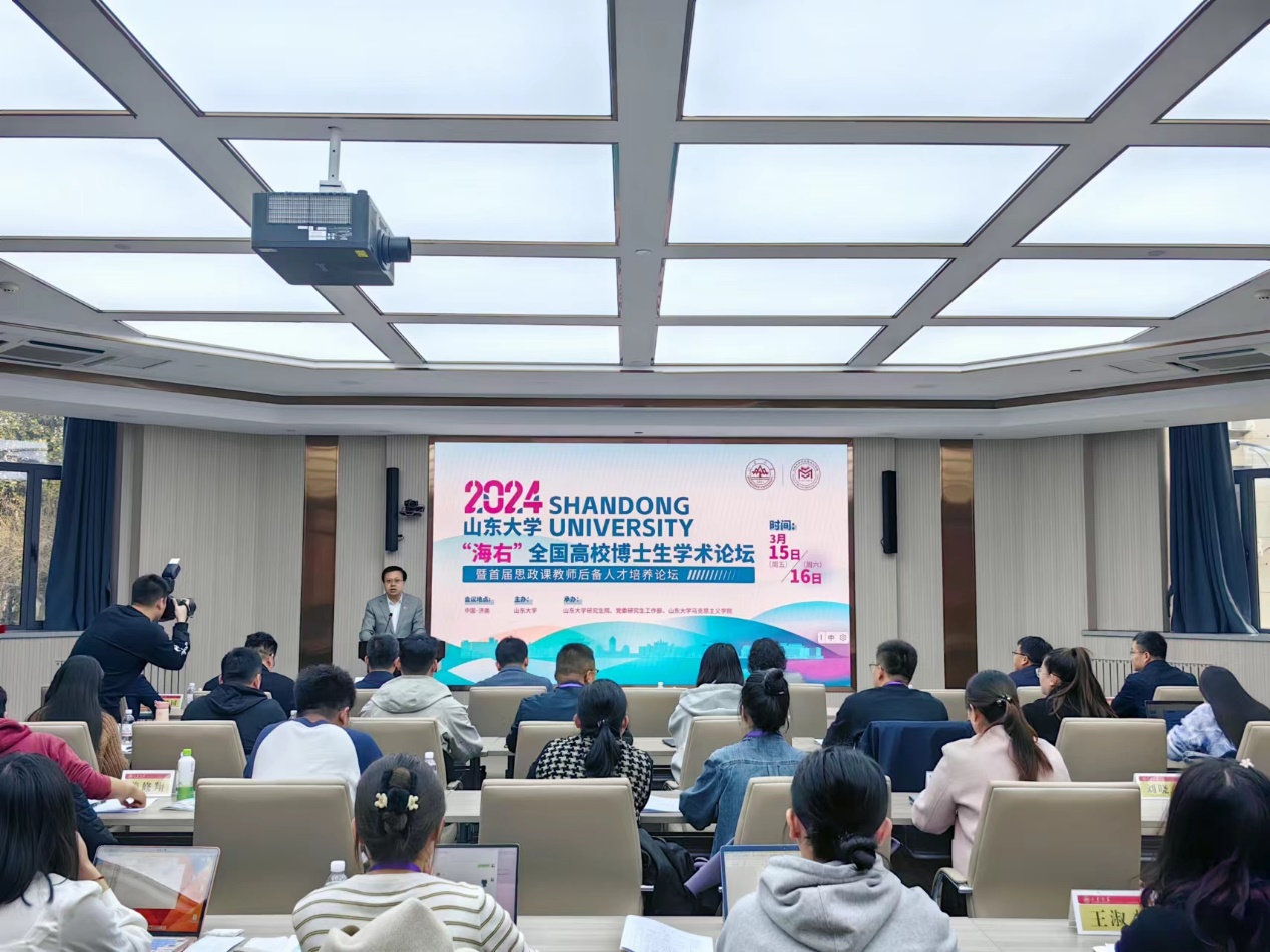 會議由山東大學研究生院、黨委研究生工作部、馬克思主義學院共同舉辦。有關專家學者及來自北京大學、清華大學等24所高校重點馬院的思政課教師隊伍后備人才博士生70余人參加論壇。