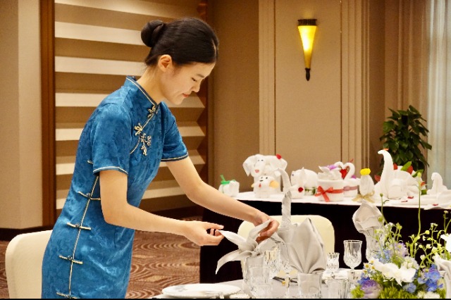 為全面檢驗校企共育成果,此次展示活動由酒店員工、系部學生同臺競技,涵蓋了技能類、標準類、品質類、創(chuàng)意類4個賽項,分為大廈故事、南湖聲音、技藝之美、禮儀之邦4個項目,全面比拼選手們的綜合素質。
