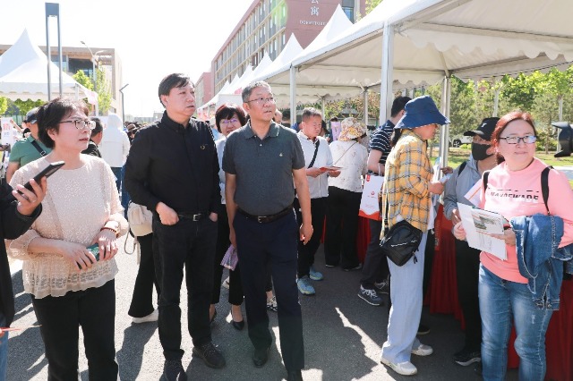 活動當天,北京信息科技大學黨委書記解江凌,校黨委副書記、校長郭福,來到咨詢會現場,與考生及家長親切交流。學校供圖