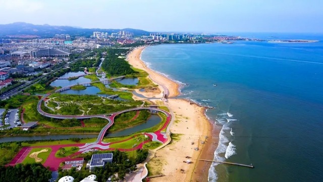 航拍的日照市陽光海岸綠道(無人機照片)。新華社記者 郭緒雷 攝
