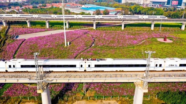 航拍的日照市東港區碳匯花海(無人機照片)。新華社記者 郭緒雷 攝