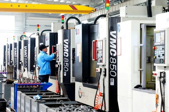 在位于日照市嵐山區的山東華源索具有限公司,工作人員在數控機床前值守。新華社記者 郭緒雷 攝
