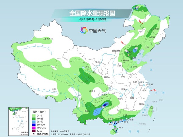 中央氣象臺預計,今天,內蒙古東北部、黑龍江北部、遼寧西部、華北中北部、青海東部、川西高原北部、西南地區東南部、華南南部等地部分地區有中到大雨,其中,貴州中部、廣東西南部等地部分地區有暴雨或大暴雨。