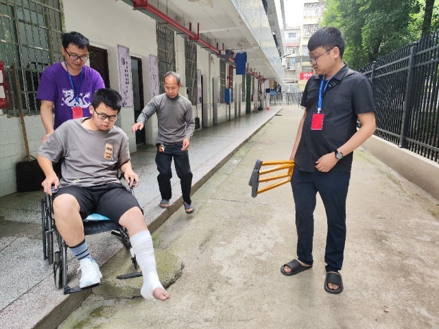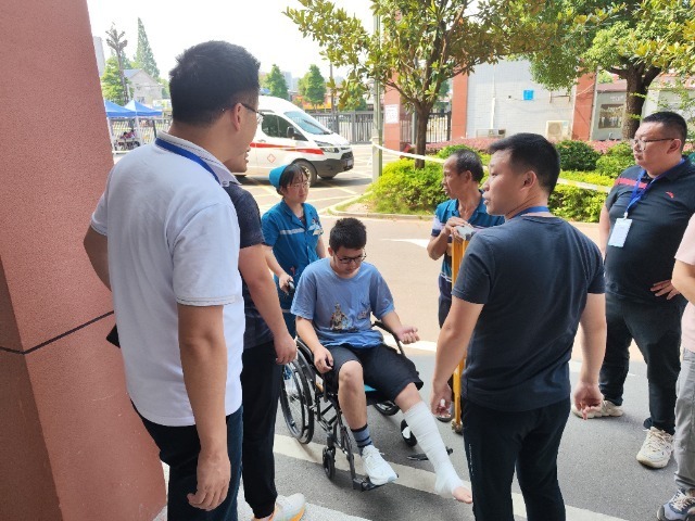 侯志彬于5月21日不慎腳部受傷,行動困難。石門縣招考辦調(diào)動縣衛(wèi)健、醫(yī)院、考點學(xué)校等各部門力量,為這位輪椅考生提供全程醫(yī)療保障和服務(wù)。從醫(yī)院到考點,縣人民醫(yī)院的救護車和醫(yī)護人員全程護送;石門二中考點特意為他開辟了綠色通道,并提供一樓單間寢室以便午休;石門五中準備了被褥和午餐,確保他在考試間隙能夠得到充分休息和營養(yǎng)補給;考試結(jié)束后,縣紅十字會醫(yī)院的救護車和醫(yī)護人員出動,將他安全送達人民醫(yī)院的病房;縣人民醫(yī)院骨科護士長王源送來一副木拐杖;送考領(lǐng)隊為他購買合適的擱腳器具;考點對面燒仙草奶茶店女老板為他贈送一個小凳子,送考老師孫曉婷把自己的抱枕送給他……