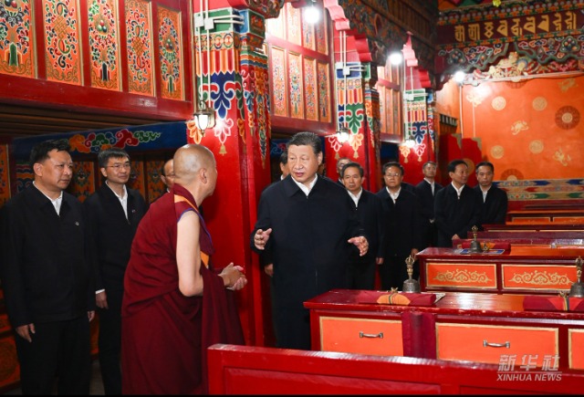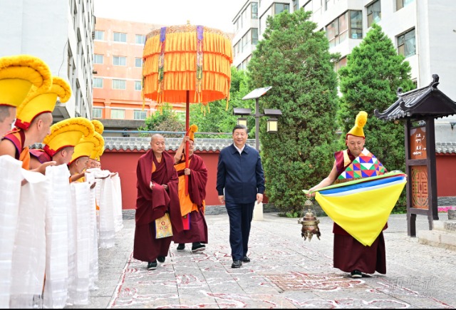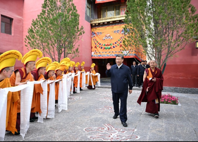 18日下午,習近平總書記在青海省考察調研。他先后來到西寧市的果洛西寧民族中學和宏覺寺,了解當地深入推進教育工作東西部協作和對口支援、加強鑄牢中華民族共同體意識教育和藏傳佛教界弘揚愛國愛教優良傳統、促進民族團結進步等情況。