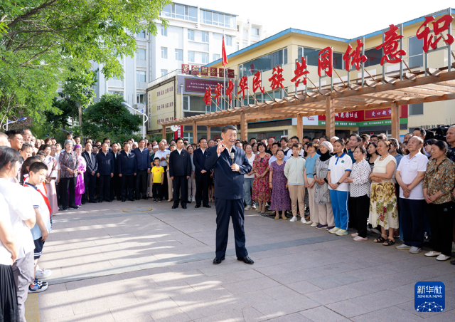 傍晚時分,社區廣場十分熱鬧,居民們看見總書記來了,紛紛圍攏過來,熱烈鼓掌歡迎。習近平親切地對大家說,時隔4年,我再次來寧夏看望各族干部群眾,見到大家非常高興!中華民族是一個大家庭,各族人民要像石榴籽一樣緊緊抱在一起。要不斷鑄牢中華民族共同體意識,把各族人民的心緊緊連在一起,把各方面的力量廣泛凝聚到一起,共同推進中國式現代化,共襄中華民族偉大復興的盛舉。