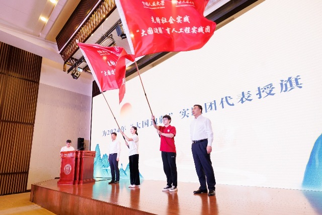 活動中,中國人民大學黨委書記張東剛,國家民族事務委員會專職委員、中央民族大學黨委書記查顯友為2024年“大國邊疆”實踐團代表授旗。首批22支隊伍近400名師生將先后奔赴甘肅、云南、廣西、內蒙古、吉林等邊疆省份開展調研。