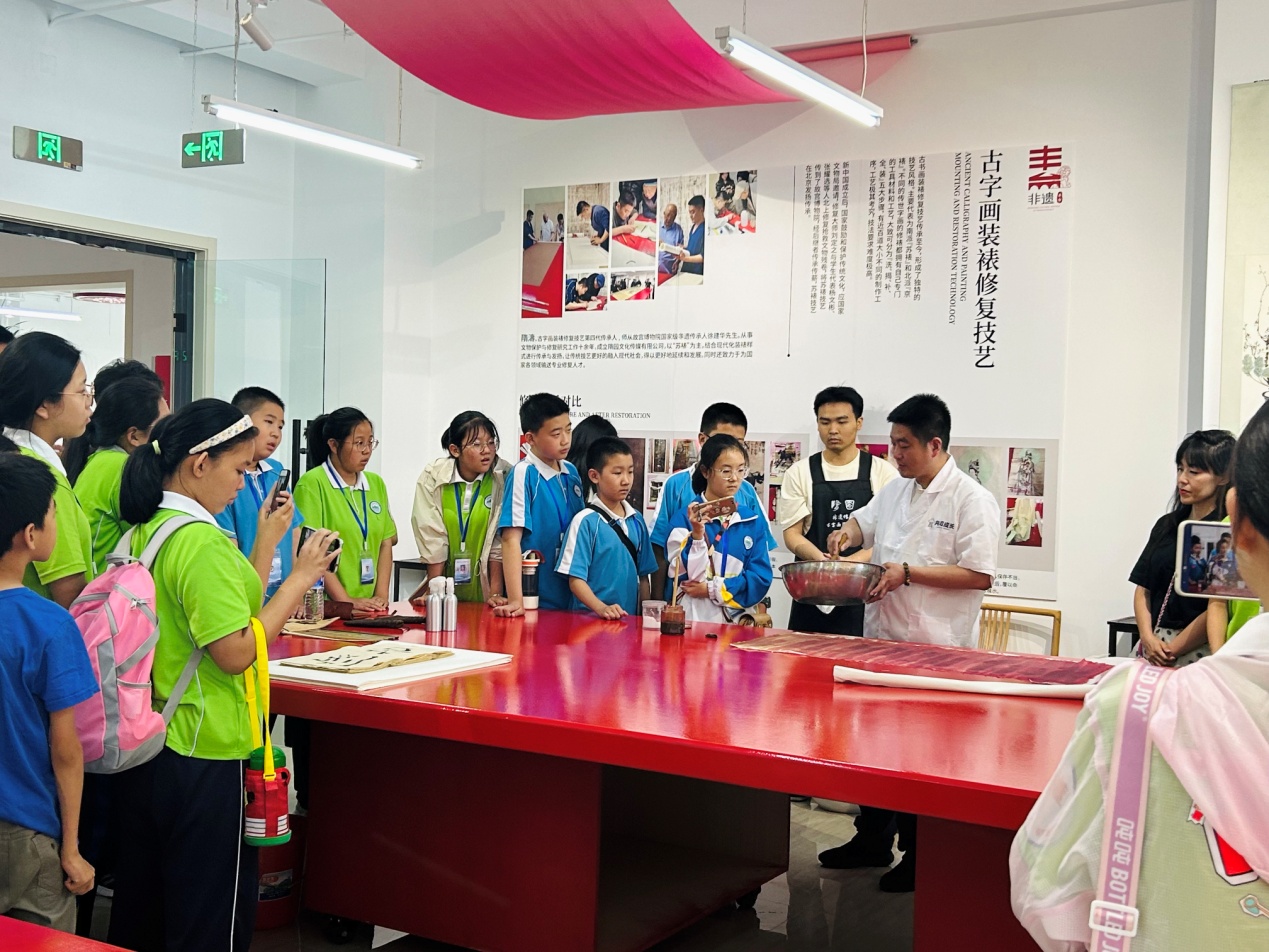 古字畫裝裱修復技藝傳承人隋濤在非遺體驗中心就有一處自己的工作室,他告訴記者,隨著傳統文化的復興,非遺技藝越發受到重視,從曾經某一行當的小眾技藝變成了孩子們了解中華傳統文化的“叩門磚”。“這些年,我們不斷收到一些學校的邀約,帶著非遺進校園,現在很多孩子都學寫毛筆字,跟他們講書畫的裝裱修復,他們都非常感興趣。”