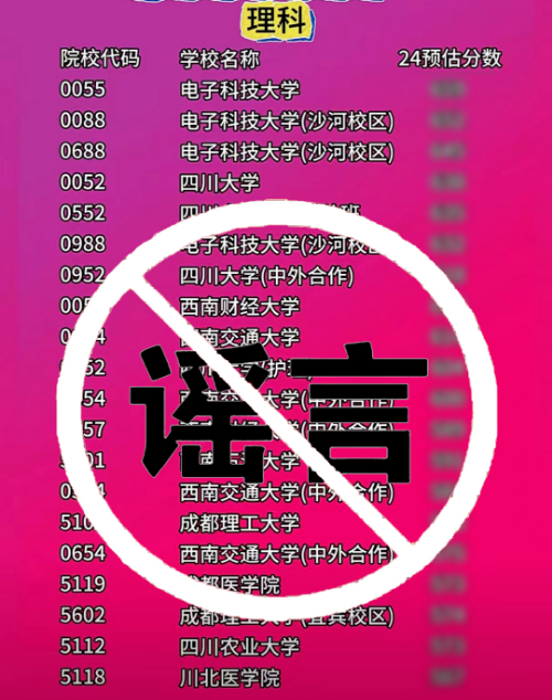 近日,一些社會機構網絡賬號以文章或視頻形式發布所謂四川省2024年普通類本科一批調檔線,經過四川省教育考試院核實,這些信息均為虛假信息,與實際情況不符。