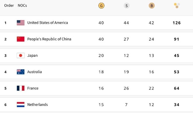 周進強介紹,本屆奧運會中國體育代表團參賽運動員404人,共參加了30個大項42個分項232個小項的比賽,在11個大項14個分項上獲得40金27銀24銅,共91枚獎牌。金牌總數和質量取得突破,40枚金牌超過倫敦奧運會的39金、東京奧運會的38金。獲得金牌的運動員達60名,創境外參賽歷史新高,與2008年北京奧運會持平。此外,在射擊、游泳、舉重項目上,打破世界紀錄1項、創造奧運會紀錄9項次。