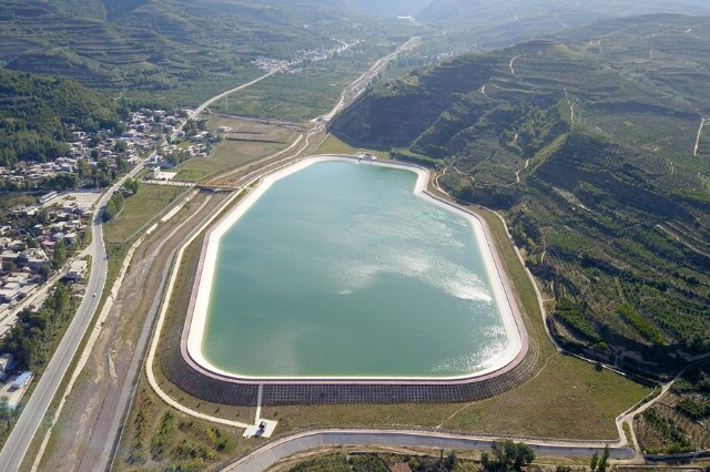 這是在天水市拍攝的已投用的天水城區引洮供水工程楊家灣調蓄水池(無人機照片)。新華社記者 范培珅 攝