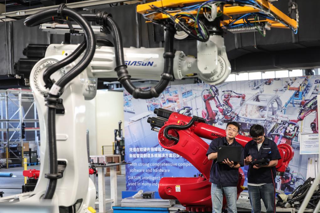 2024年6月3日,沈陽新松機器人自動化股份有限公司,機器人研發工程師在調試。新華社記者潘昱龍攝