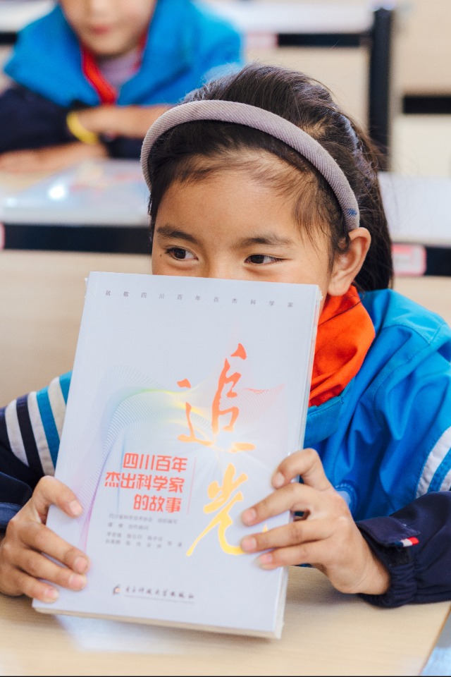 9月27日,四川師范大學攜手中國科學院光電技術研究所科學家精神教育基地,在四川省甘孜州九龍縣中學、甘孜城關小學及嘎爾鎮寄宿制小學成功舉辦“一對一”精準幫扶“科學家精神進校園”活動,為學生贈書。四川師范大學供圖
