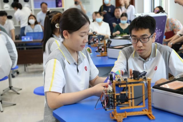 “AI走進課堂,讓教師實施創新教育有了抓手,也讓學生們從接收知識的聽課者轉變為參與實踐的創想家,有效提升了學生的創新意識、創新能力和科學素養,幫助每位學生更好地擁抱人工智能時代。”天津益中學校黨支部書記、執行校長袁爽說。(中國教育報-中國教育新聞網記者 武雋 徐德明)