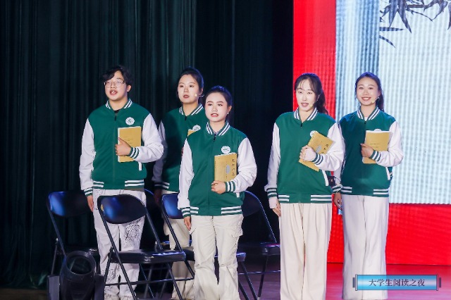 “大學生閱讀之夜”分四個篇章,包括閱讀文化:從根脈到繁茂;閱讀人生:從細流到江海;閱讀榜樣:從腳下到高峰;閱讀芳華:從星火到光芒四部分。通過吟誦、演講、話劇表演等形式,展現出高校學生從讀書中汲取力量、增長見識、傳承文化、走向未來的精神風貌。不同高校、不同專業的大學生在舞臺上結合各自院校的專業特點,依托獨有的學科特色,緊緊圍繞“閱讀”這一主題,展現新時代新青年在閱讀書籍和從閱讀榜樣身上體悟到的時代重任、勇于開拓、敢于創新的挑戰精神和堅定的文化自信。