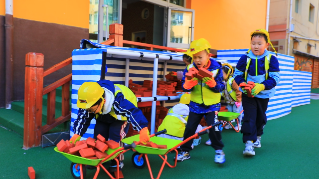 中國教育報-中國教育新聞網訊(通訊員 林冰瑩 記者 余闖)“我想給我們家小貓蓋一個房子”“我想搭一座大城堡”“我想建一座高塔”……近日一節活動課上,青海省西寧市第一幼兒園的小朋友們身穿防護服、頭戴安全帽、手戴安全手套,有的捧著小方磚,有的推著小貨車,還有的拿著工具尺,快樂地沉浸在游戲中。