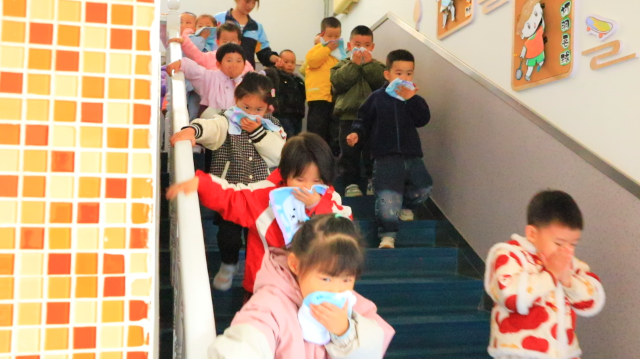 幼兒園開展疏散逃生演習。楊青 攝