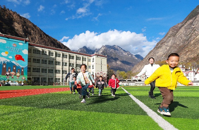 “孩子們,要和伙伴一起分享快樂呀!”正午后的陽光透過丹巴縣墨爾多山俯照大地,四川省甘孜州丹巴縣墨爾多山鎮中路幼兒園教師羅靜悉心守護著孩子們,玩蹺蹺板、爬繩梯、過木板橋……幼兒園里滿是歡聲笑語。