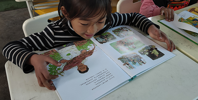 2021年的11月份,我們開始學(xué)習(xí)拼音,在學(xué)習(xí)拼音的同時(shí),孩子們也開始慢慢寫一些簡單的字。與此同時(shí),我利用午讀時(shí)間,帶孩子們讀圖畫書。這些書,是親近母語公益捐贈(zèng)給我們的,書目來自親近母語的兒童分級(jí)閱讀書單,都是精選的經(jīng)典圖畫書?!秼寢屬I綠豆》《我爸爸》《猜猜我有多愛你》《逃家小兔》《團(tuán)圓》……最開始,孩子們自然很難聽得懂圖畫書里的文字,但是因?yàn)橛挟嬅妫⒆觽兛粗鴪D畫,聽老師大聲讀故事,孩子們把聲音和畫面聯(lián)系起來,畫面有了聲音,聲音有了畫面,故事就動(dòng)起來了。就這樣,一天讀一本兩本,一直讀下去。