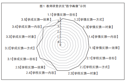 第四,挖掘數據信息,開展基于數據實證的課堂診斷。基于教師課堂觀察與課堂評價積累的數據信息,運用數字化工具將積累的大數據進行可視化處理。以學期為時間周期,實施課堂診斷,為各學科組乃至于每一位教師實施“最小教學單元的教學評一體化”的具體情況進行“數字畫像”(詳見圖1),幫助教師群體和個體對照評價表優化教學設計,對照“數字畫像”優化教學行為。