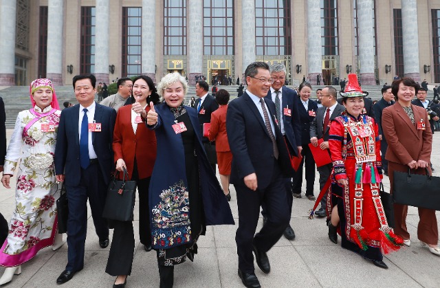 十四屆全國人大三次會議11日下午3時在人民大會堂舉行閉幕會。會議結(jié)束后,代表們走出會場。中國教育報-中國教育新聞網(wǎng)記者 張學(xué)軍 攝