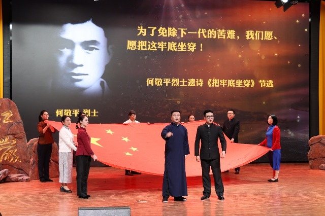 中國教育報(bào)-中國教育新聞網(wǎng)訊(通訊員 劉一君 記者 李澈)“線兒長、針兒密,含著熱淚繡紅旗,繡呀繡紅旗。熱淚隨著針線走,與其說是悲,不如說是喜……”伴隨著《繡紅旗》的深情歌聲,一面鮮艷的五星紅旗在“王樸”“張露萍”“江姐”等革命先烈的簇?fù)硐滦煨熹佌梗c他們身旁鐫刻有“紅巖”二字的磐石定格成一幅壯美畫卷,正訴說著那段革命理想大于天的英雄往事。