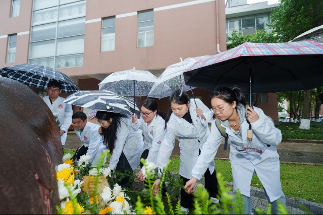 現場舉行了基礎醫學院思想政治教育基地授牌儀式。未來,學院將進一步整合資源、創新形式,把生命教育、專業教育與家國情懷教育深度融合。在“實驗動物紀念碑”前,師生依次獻花,致敬和感恩所有為人類科學研究作出貢獻的“無名英雄”。